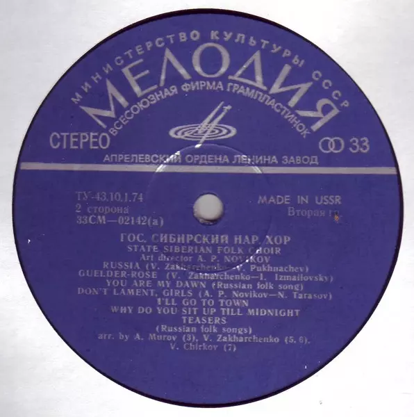 | Artist | Siberian Russian Folk Chorus |