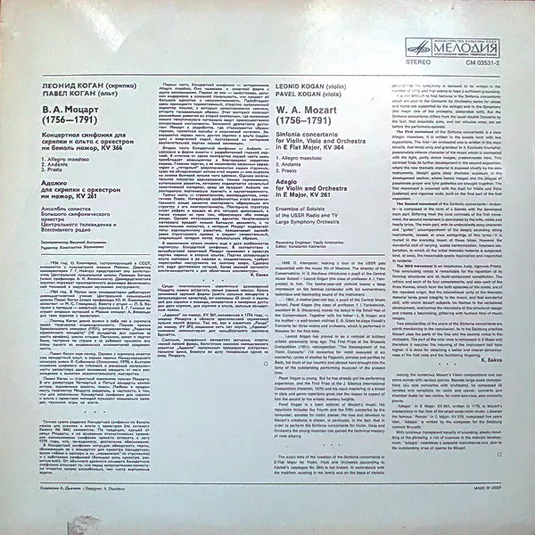| Artist | Wolfgang Amadeus Mozart | Leonid Kogan | Pavel Kogan |