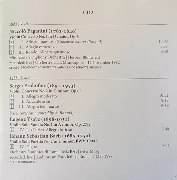 Aaron Rosand: In Memoriam version on 4CD/Box Set in Remastered edition. This particular edition was published in Worldwide in publishing company Rhine Classics on 17. April 2026. Album spans genres Classical, Baroque, Modernism, Romantic, Concerto and Sonata.