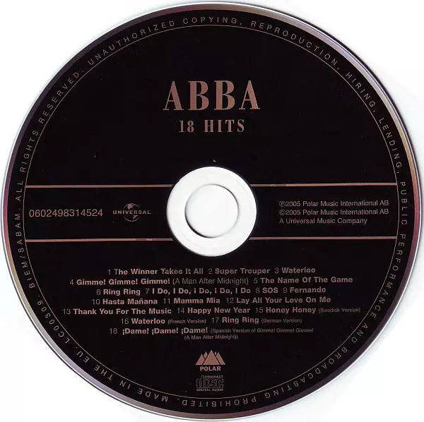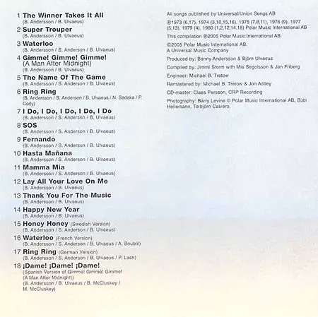 Abba's greatest hits at a great price. The booklet includes a foreword by the famous "abbologist" Carl Magnus Palm, author of Bright Lights, Dark Shadows - The Real Story of ABBA