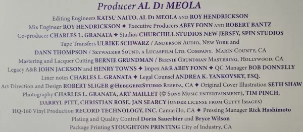 | Artist | Al Di Meola | John McLaughlin | Paco De Lucía |