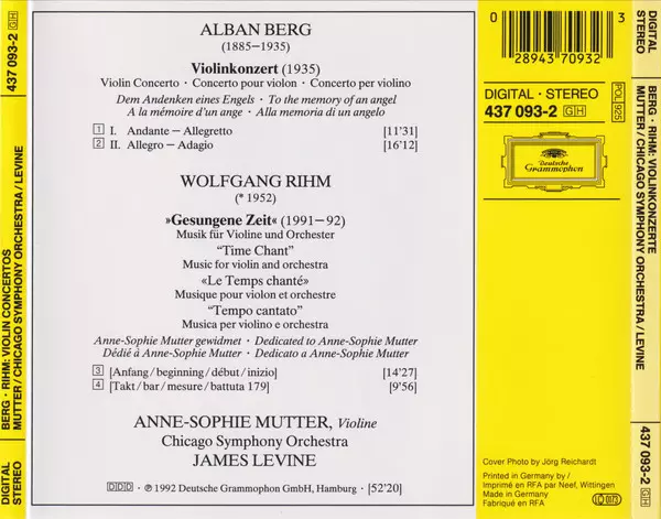 | Artist | Anne-Sophie Mutter | The Chicago Symphony Orchestra | James Levine | Alban Berg | Wolfgang Rihm |