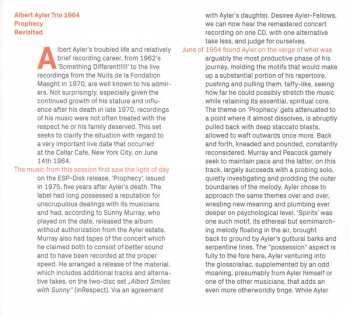 | Artist | Gary Peacock | Albert Ayler | Sunny Murray |
