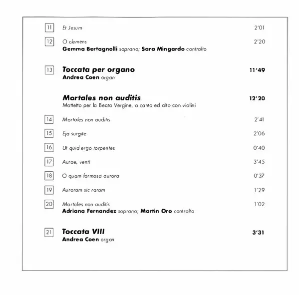 | Mortales Non Auditis, Mottetto Per la Beata Vergine, à Canto ed Alto Con Violini | ||