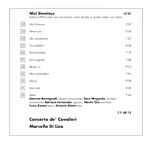 | Nisi Dominus, Salmo 126 à Due Voci Concertanti, Canto ed Alto, e Quattro Ripieni Con Violini |