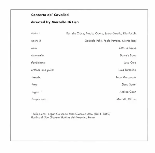 | Artist | Alessandro Scarlatti | Sara Mingardo | Antonio Abete | Furio Zanasi | Martin Oro | Gemma Bertagnolli | Adriana Fernández | Marcello Di Lisa | Concerto De' Cavalieri |