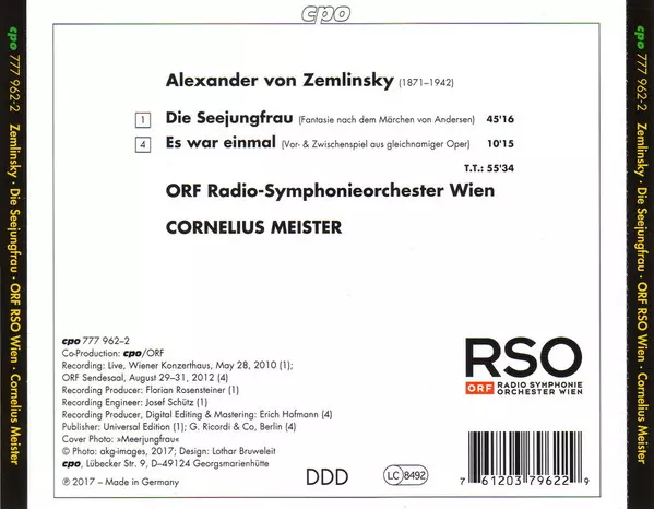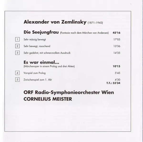 | Artist | Alexander Von Zemlinsky | ORF Radio-Symphonieorchester Wien | Cornelius Meister |