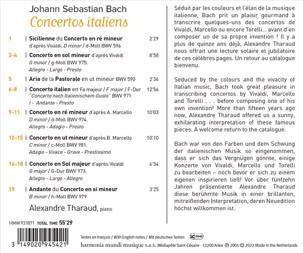 | Artist | Johann Sebastian Bach | Alexandre Tharaud |