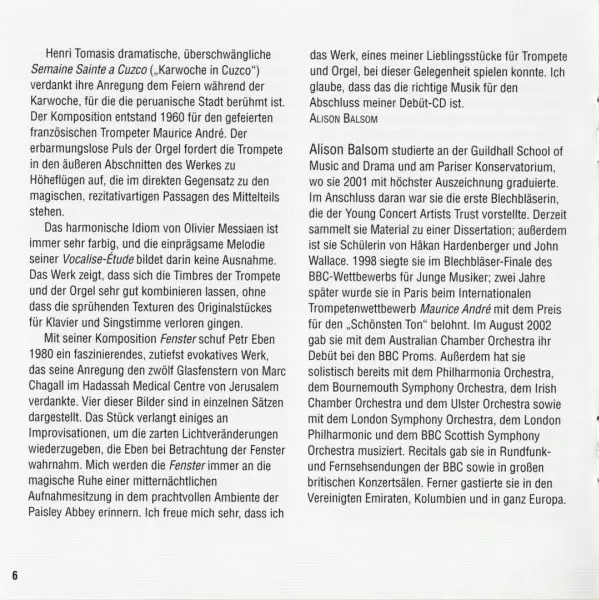 | Artist | Alison Balsom | Quentin Thomas |