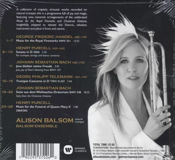 Alison Balsom: Royal Fireworks DIGI version on CD in digipack edition. This particular edition was published in Europe in publishing company Warner Classics on 8. November 2019. Album spans genres Classical and Baroque. Digipack.
