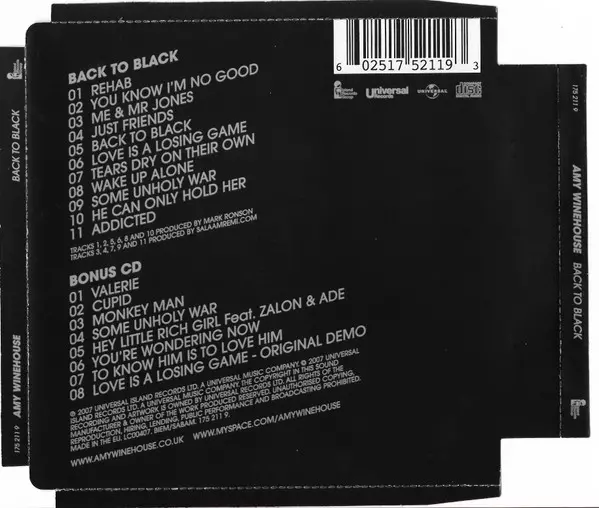Amy Winehouse: Back To Black DLX version on 2CD in deluxe edition. This particular edition was published in United Kingdom in publishing company Universal Records in cooperation with Island Records Group and Universal on 29. December 2017.