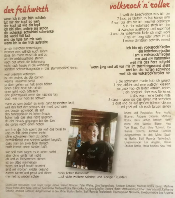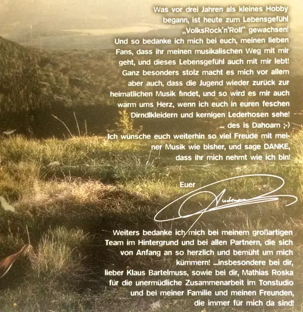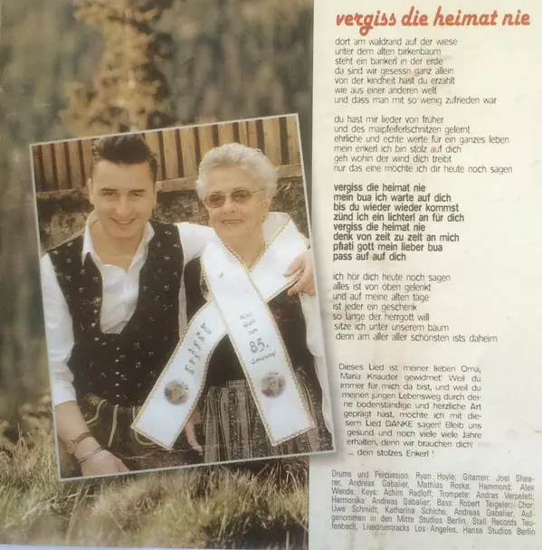 Choir Andreas Gabalier, Katharina Schicho, Uwe Schmidt (11) | Drums, Percussion Ryan Hoyle | Guitar Andreas Gabalier, Mathias Roska | Harmonica Andreas Gabalier | Keyboards Achim Radloff | Music By, Lyrics By Andreas Gabalier | Violin Jeneé Fleenor