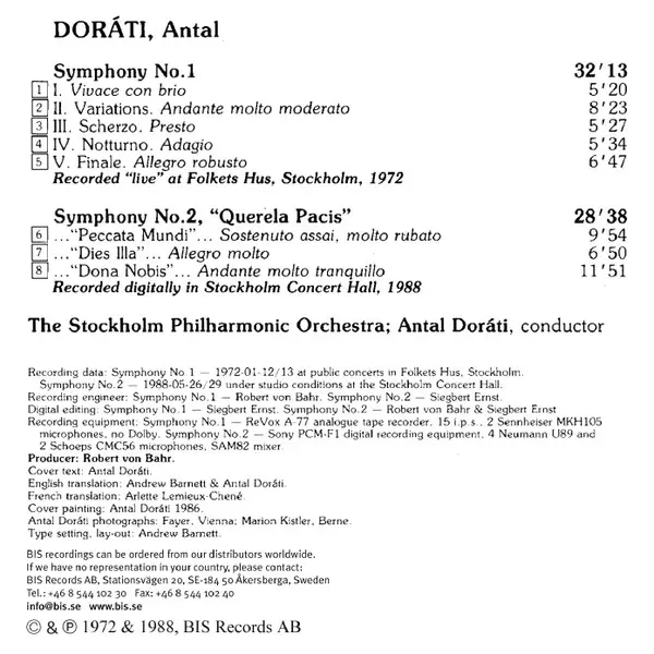 | Artist | Antal Dorati | Stockholms Filharmoniska Orkester |