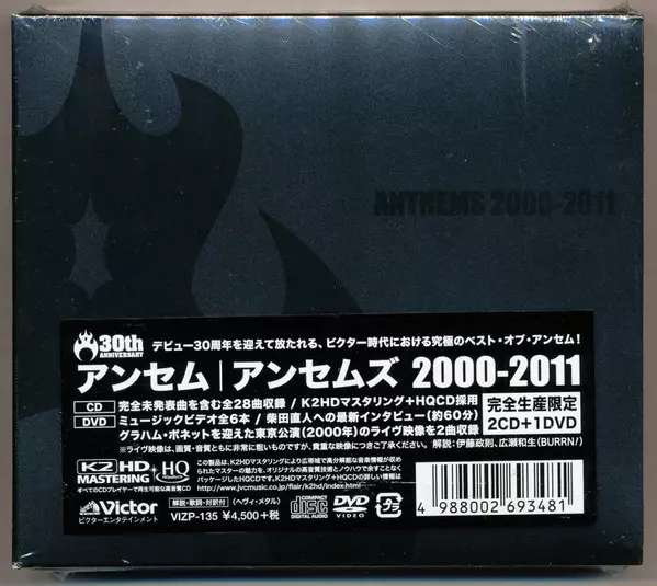 Anthem: Anthems 2000-2011 version on 2CD/DVD in Remastered edition. This particular edition was published in Japan in publishing company Victor on 9. June 2015. Album spans genres Rock, Hard Rock and Heavy Metal. HqCD.
