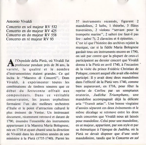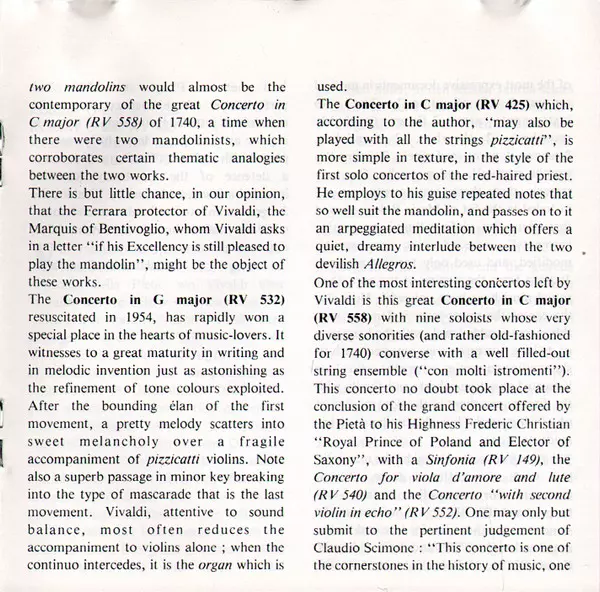 | Concerto En Sol Majeur = G Major = G-dur RV 532 Pour 2 Mandolines, Cordes Et Clavecin = For 2 Mandolins, Strings And Harpsichord | ||