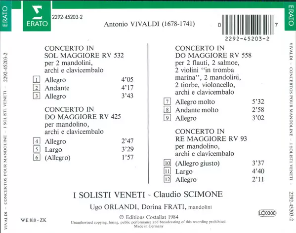 | Title | Concerti Per Mandolini RV 93, 425, 532 & 558 |