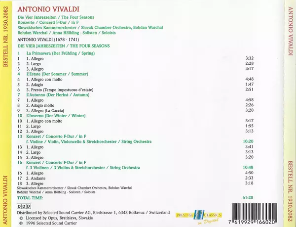 | Artist | Antonio Vivaldi | Slovak Chamber Orchestra | Bohdan Warchal | Anna Hölblingová |