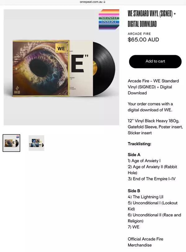 "WE", očekávané šesté studiové album skupiny Arcade Fire, vyjde u Columbia Records. Album "WE", které produkovali Nigel Godrich, Win a Régine a které se nahrávalo na různých místech včetně New Orleans, El Pasa a Mount Desert Island, paradoxně destiluje "nejdelší dobu, kterou jsme kdy strávili psaním bez přerušení, pravděpodobně vůbec kdy" (Win ...