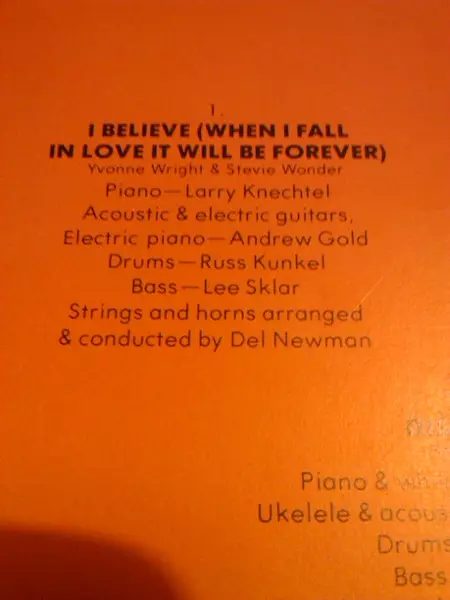 Acoustic Guitar, Electric Guitar, Electric Piano Andrew Gold | Arranged By [Strings And Horns], Conductor Del Newman | Bass Leland Sklar | Drums Russ Kunkel | Piano Larry Knechtel | Written-By Stevie Wonder, Yvonne Wright