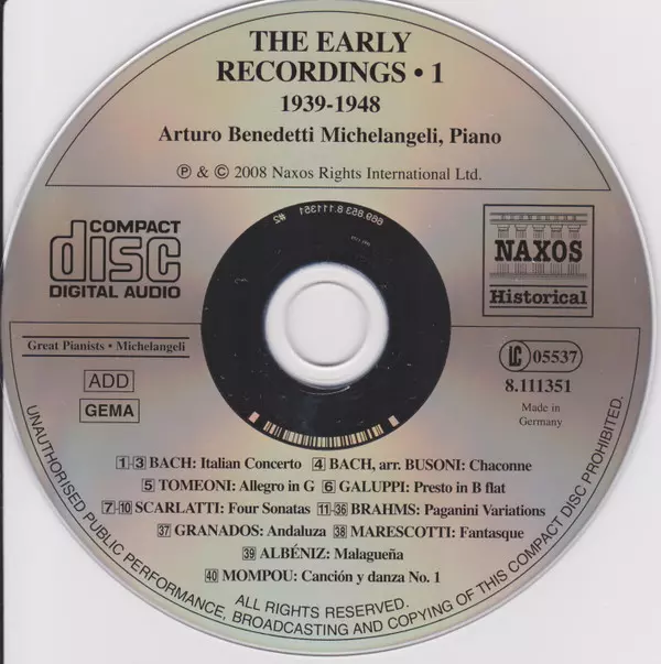 | Artist | Arturo Benedetti Michelangeli |