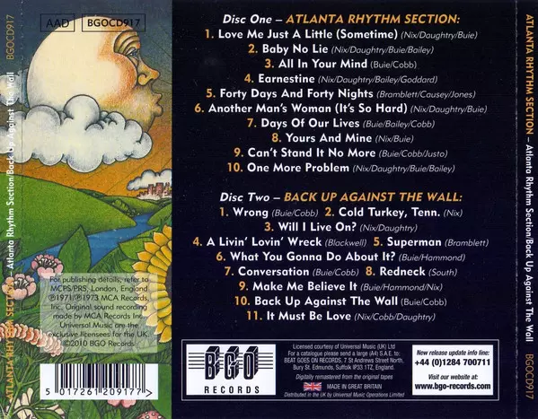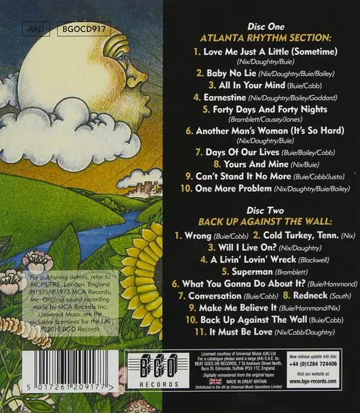 Atlanta Rhythm Section: Atlanta Rhythm Section / Back Up Against The Wall version on CD in Remastered edition. This particular edition was published in United Kingdom in publishing company BGO Records on 5. April 2010. Album spans genres Rock and Southern Rock.