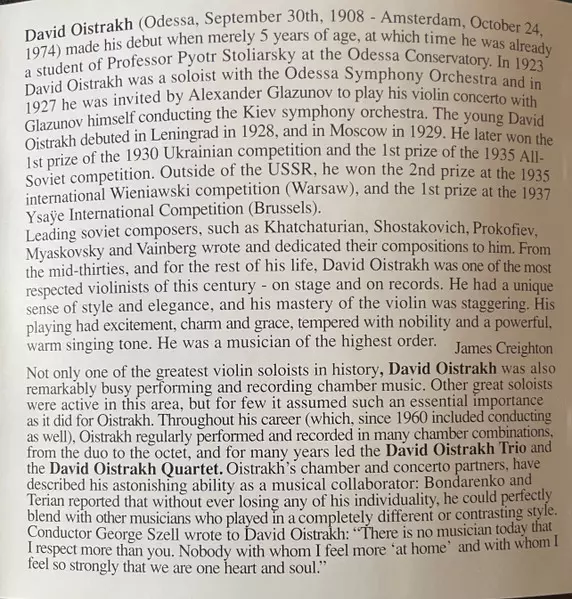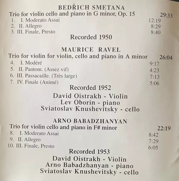 | Artist | Bedřich Smetana | Maurice Ravel | David Oistrach | Арно Бабаджанян |
