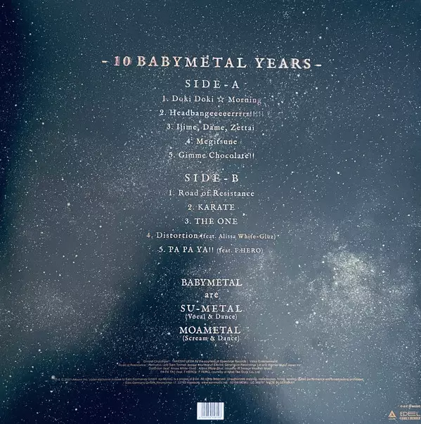 "10 Babymetal Years" is a perfect overview of the first decade of the world's most successful Japanese metal phenomenon, whose sound is defined by a strange blend of fast heavy metal and melodic J-pop. "10 Babymetal Years" is an excellent summary of the best of Babymetal's three studio albums and also includes the track "The One (Japanese Versio...