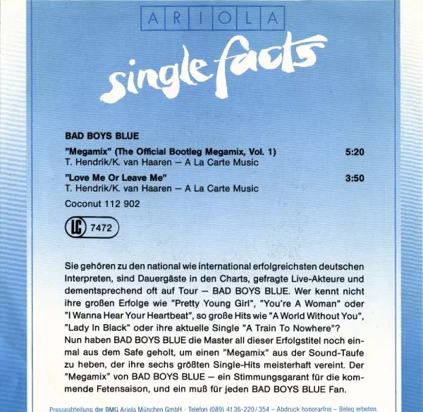 | Artist | Bad Boys Blue |
