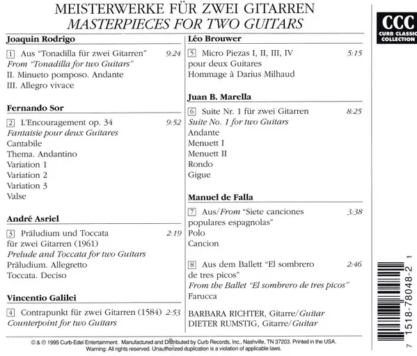 | Title | Masterpieces For Two Guitars. Meisterwerke Für Zwei Gitarren |