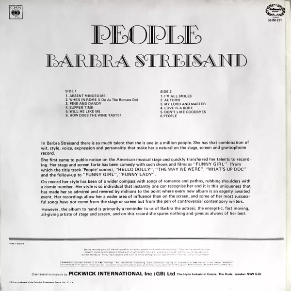 | Artist | Barbra Streisand |