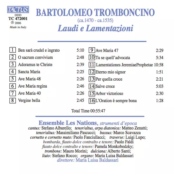 | Artist | Ensemble Les Nations | Maria Luisa Baldassari | Bartolomeo Tromboncino |