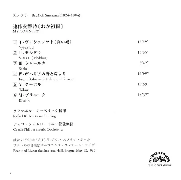 | Artist | The Czech Philharmonic Orchestra | Bedřich Smetana | Rafael Kubelik |