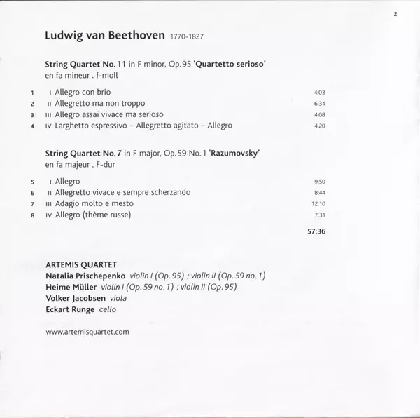 | Artist | Ludwig van Beethoven | Artemis Quartett |
