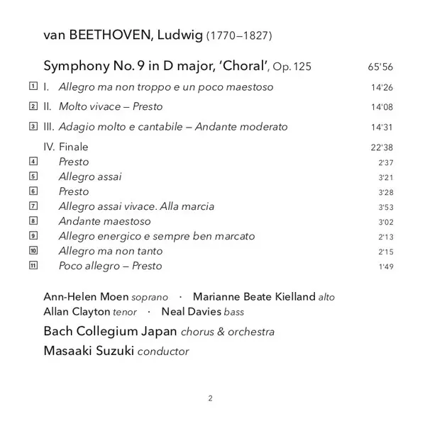 Artist | Ludwig van Beethoven | Bach Collegium Japan | Masaaki Suzuki | Marianne Beate Kielland | Allan Clayton | Neal Davies | Ann-Helen Moen |