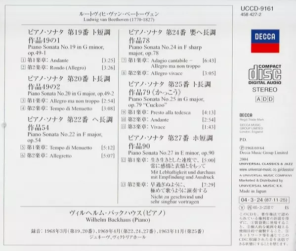| Artist | Ludwig van Beethoven | Wilhelm Backhaus |