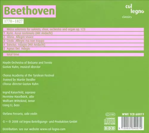 | Artist | Ludwig van Beethoven | Orchestra Haydn Di Bolzano E Trento | Gustav Kuhn | Accademia Di Montegral | Chorus Der Tiroler Festspiele |