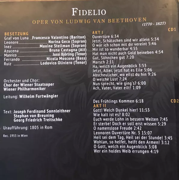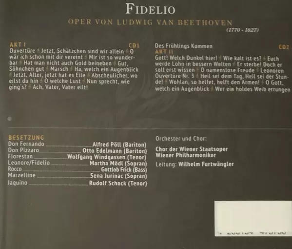 | Artist | Ludwig van Beethoven | Wilhelm Furtwängler | Gottlob Frick | Sena Jurinac | Rudolf Schock | Wolfgang Windgassen | Otto Edelmann | Martha Mödl |
