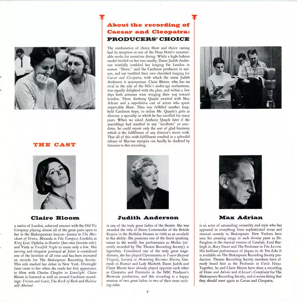 Artist | Max Adrian | George Bernard Shaw | Judith Anderson | Claire Bloom |