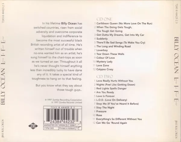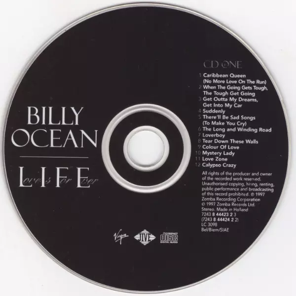 Billy Ocean: L.I.F.E. (Love Is For Ever) version on 2CD in Standard edition. This particular edition was published in Europe in publishing company Jive in cooperation with Virgin year 1997. Album spans genres Pop, Electronic, Funk / Soul, Balad, Synth-pop, Soul, Funk and Disco.