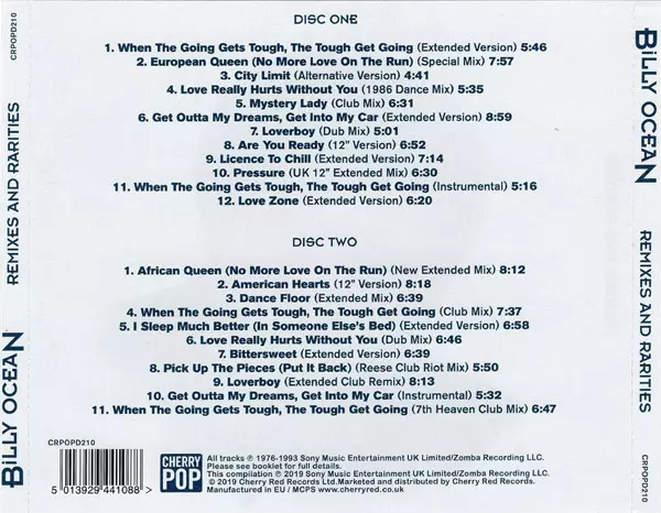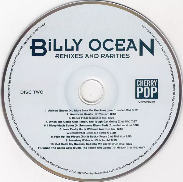 Billy Ocean: Remixes And Rarities version on 2CD in Remastered edition. This particular edition was published in Europe in publishing company Cherry Pop on 30. August 2019. Album spans genres Pop, Electronic, Funk / Soul, Balad, Synth-pop, Soul and Disco.