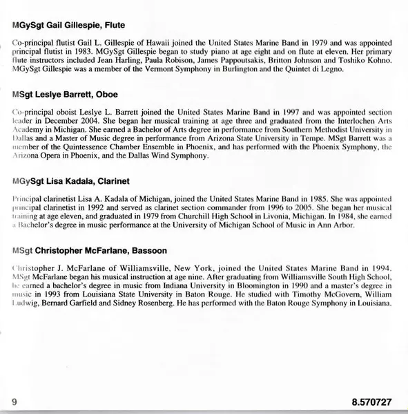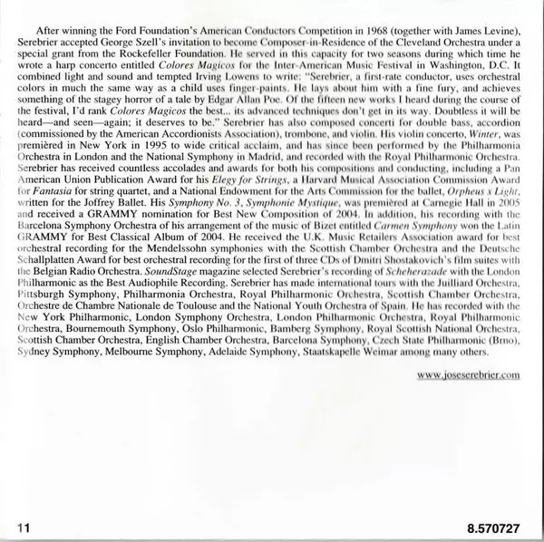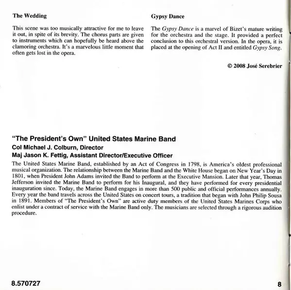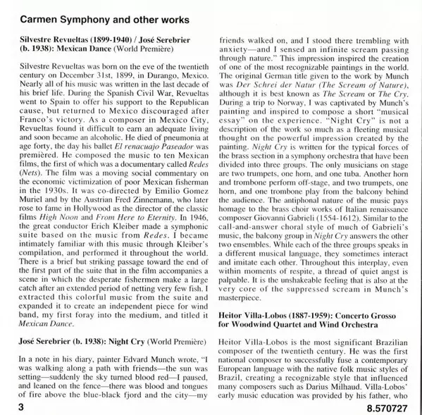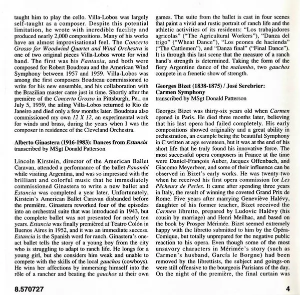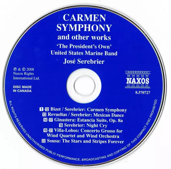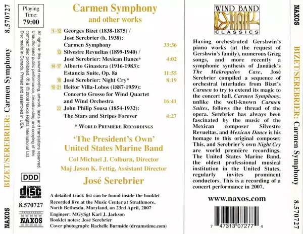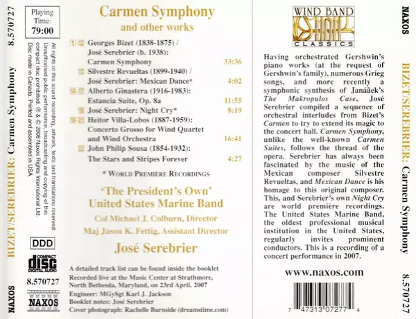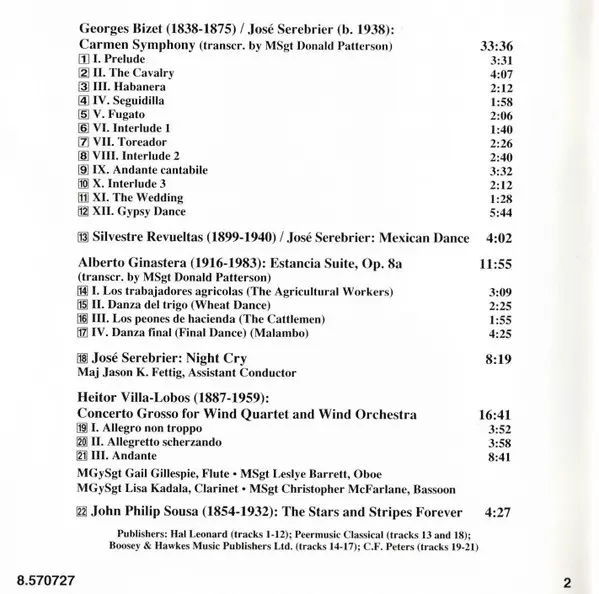 | Artist | Georges Bizet | Jose Serebrier | Heitor Villa-Lobos | Alberto Ginastera | Silvestre Revueltas | U.S. Marine Band |