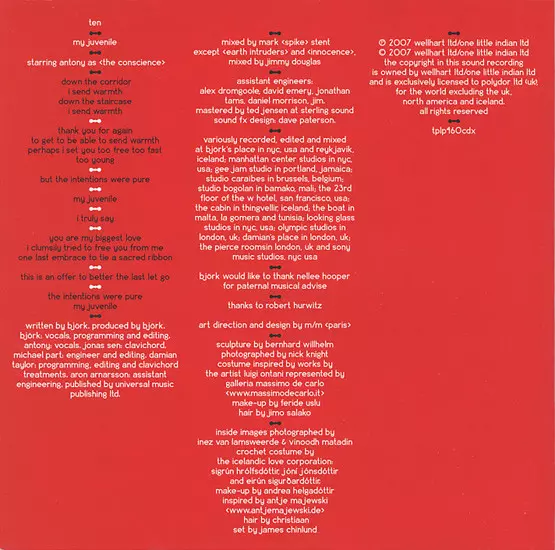 Clavichord Jónas Sen | Engineer [Assistant] Aron Arnarsson | Engineer, Edited By Michael Pärt | Programmed By, Edited By Björk | Programmed By, Edited By, Effects [Clavichord Treatments] Damian Taylor | Vocals [Starring As "The Conscience"] Antony (3)