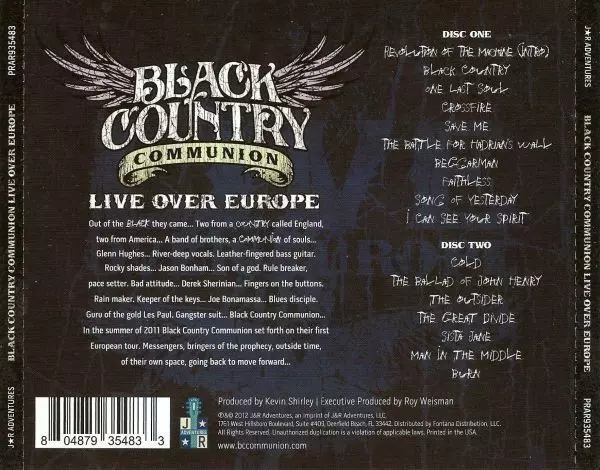 Black Country Communion: Live Over Europe version on 2CD in Standard edition. This particular edition was published in USA in publishing company J&R Adventures on 28. February 2012.