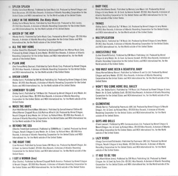 | Arranged By, Conductor Richard Wess | Producer Ahmet Ertegun, Jerry Wexler, Nesuhi Ertegun | Written-By Bobby Darin | |||