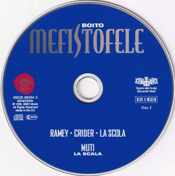 Riccardo Muti: Mefistofele version on 2CD/Box Set in Standard edition. This particular edition was published in Europe in publishing company RCA Victor Red Seal on 11. June 2009. Album spans genres Classical, Modernism and Romantic.