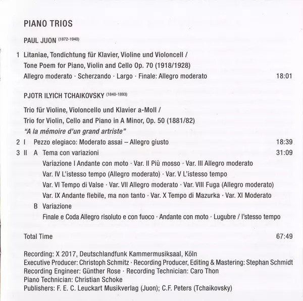| Artist | Pyotr Ilyich Tchaikovsky | Boulanger Trio | Paul Juon |