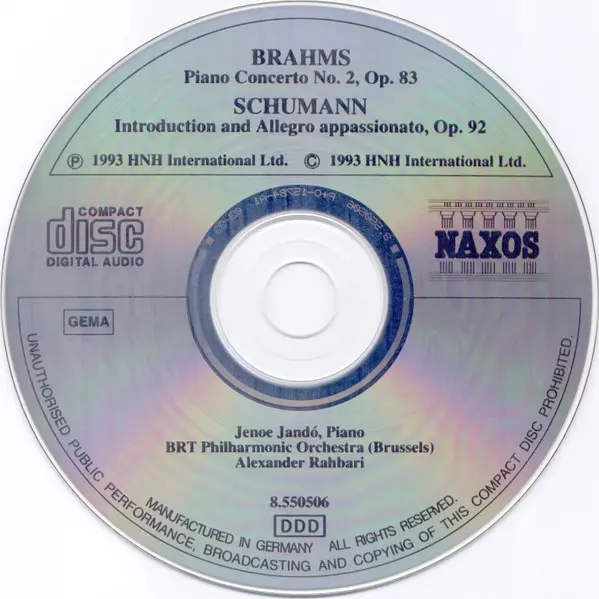 | Artist | Johannes Brahms | Robert Schumann | Jenö Jandó | Alexander Rahbari | Belgian Radio And Television Philharmonic Orchestra |