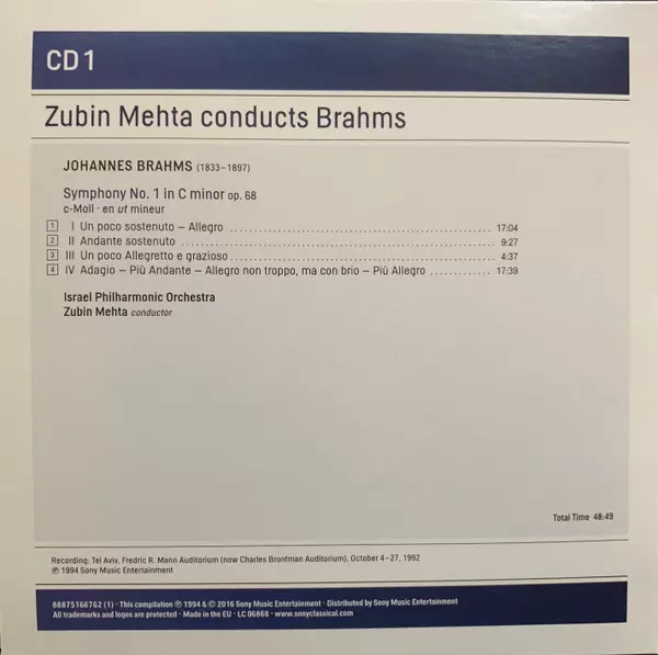 | Title | Zubin Mehta Conducts Brahms (Symphonies Nos. 1-4 • Tragic Overture • Haydn Variations) |