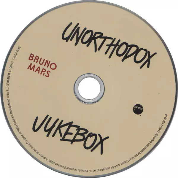 Bruno Mars: Unorthodox Jukebox version on CD in Standard edition. This particular edition was published in Europe in publishing company Atlantic on 11. December 2012.