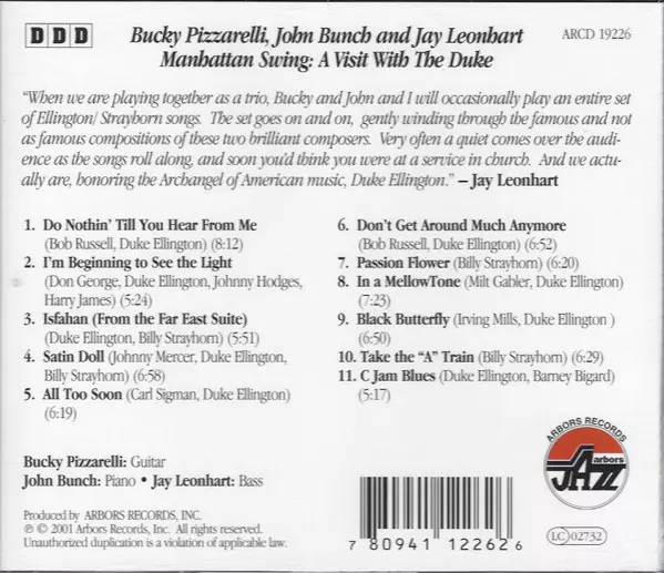 | Artist | Bucky Pizzarelli | Jay Leonhart | John Bunch |